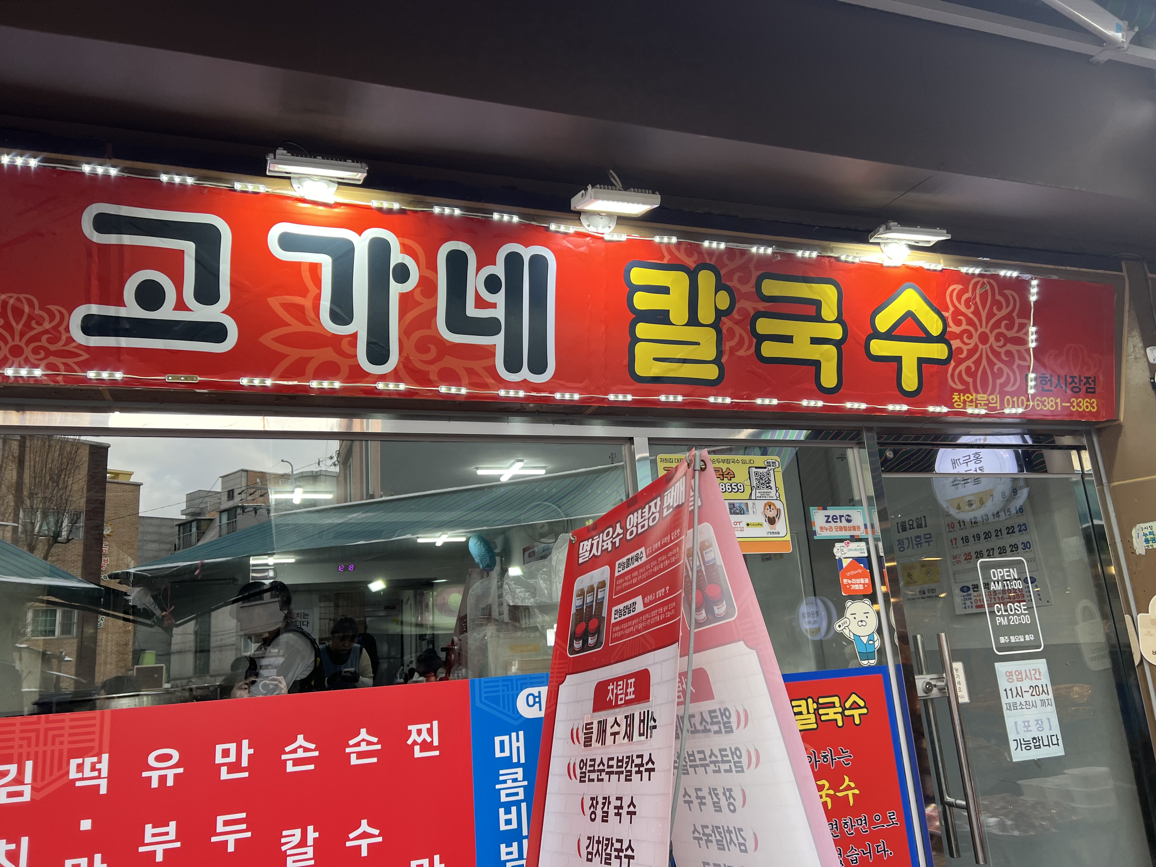 안녕하세요~ 이번에는 칼국수 맛집이라고 유명한 낙성대역 인헌시장에 있는 '고가네 칼국수'를 갔다왔어요. 저는 인헌시장에 갈 때마다 너무 깨끗해서 놀라는데요 있을 것도 다 있어요! 식당 앞에 딱 갔는데 안에 사람이 엄청 많은거에요. 그래서 벌써부터 맛집포스 제대로 풍겨주면서 기대감 뿜뿜 이였어요. 고가네칼국수는 키오스크로 선불결제를 해야돼요. 메뉴나 추가 할 것들이 많은건 아니여서 키오스크 사용이 그리 어렵지는 않은지 어르신들도 많더라구요 저희는 "들깨수제비"와 "장칼국수"를 시 켰어요!! 요즘 물가에 가격도 착하죠 ㅜㅜ 2그릇 시켰는데 18000원뿐!! 반찬은 셀프에요! 김치나 단무지는 일반적인 분식집과 비슷한 맛이에요. 그냥 그럭저럭..? 김치까지 맛있었으면 환상적이였겠지만 김치는 쏘쏘 였습니다 ㅎㅎ...