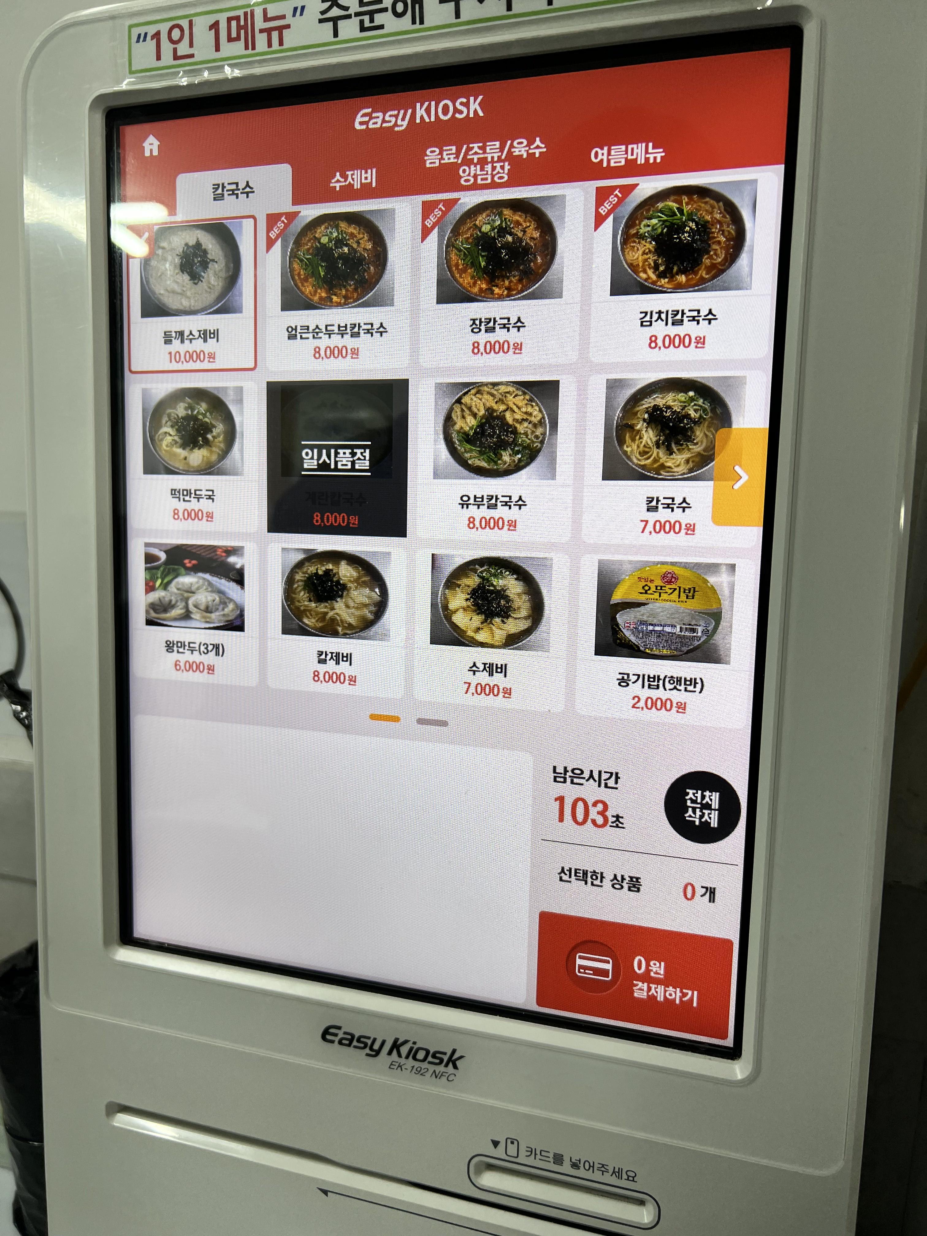 고가네칼국수는 키오스크로 선불결제를 해야돼요.