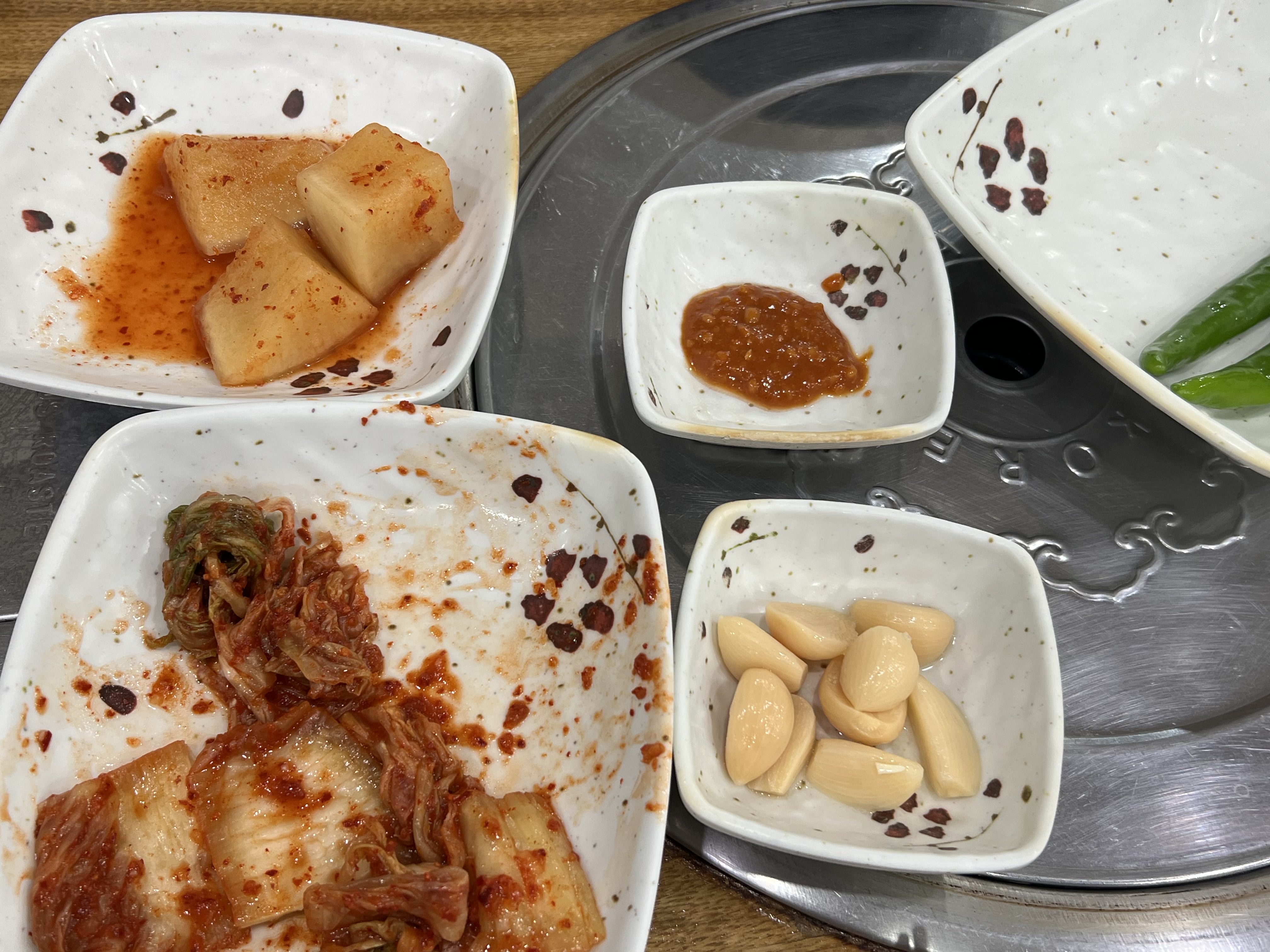 하튼!! 배추김치, 깍두기, 풋고추,마늘 등등이 나온답니다!!