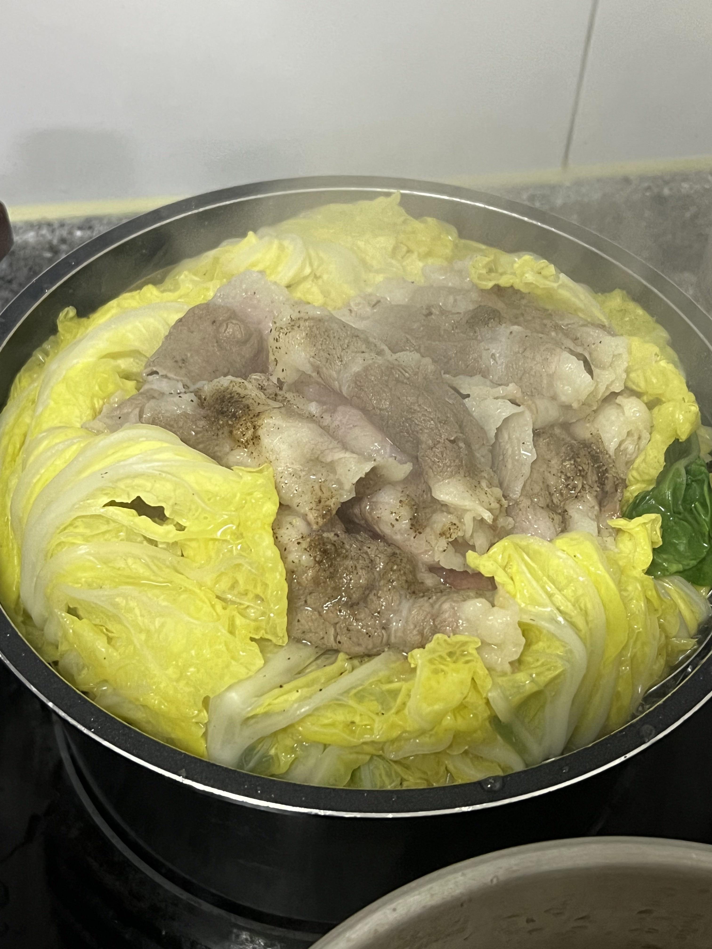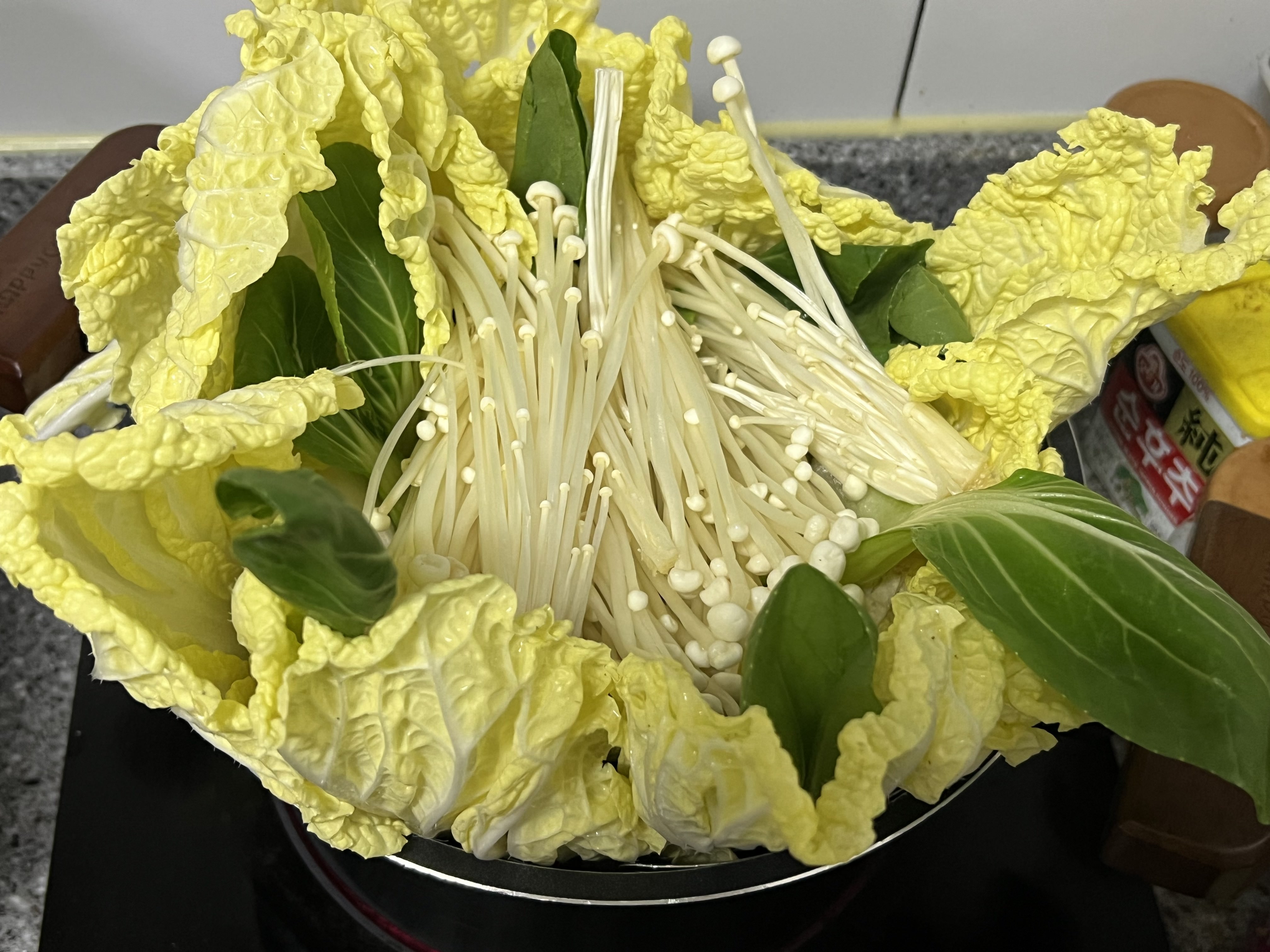 일단 찜기 냄비에 풍덩 하고 에라모르겠다 팽이버섯까지 놔줬어요