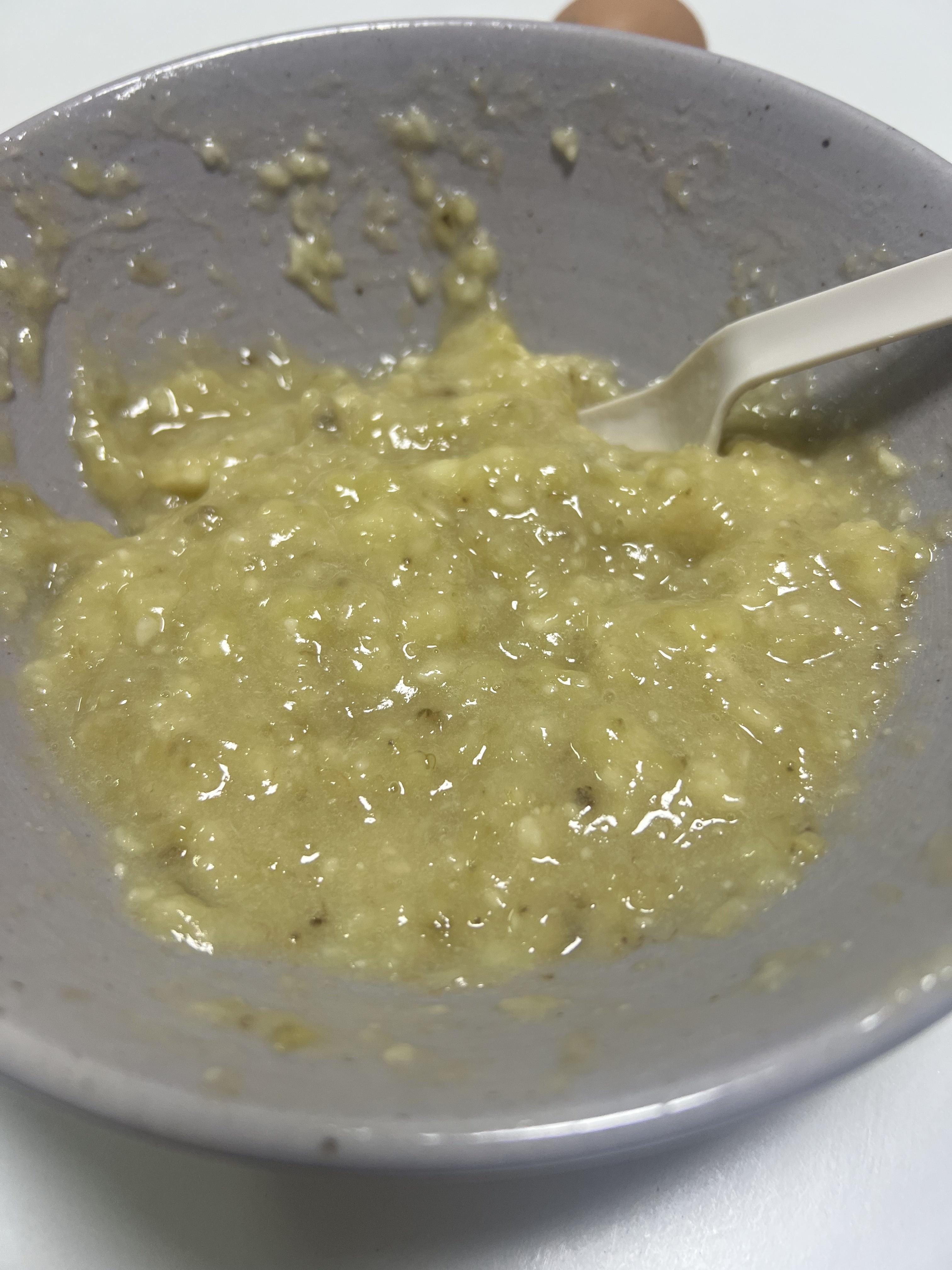 그 다음에는 포크로 으쌰으쌰 하면서 바나나를 으깨줘요!!