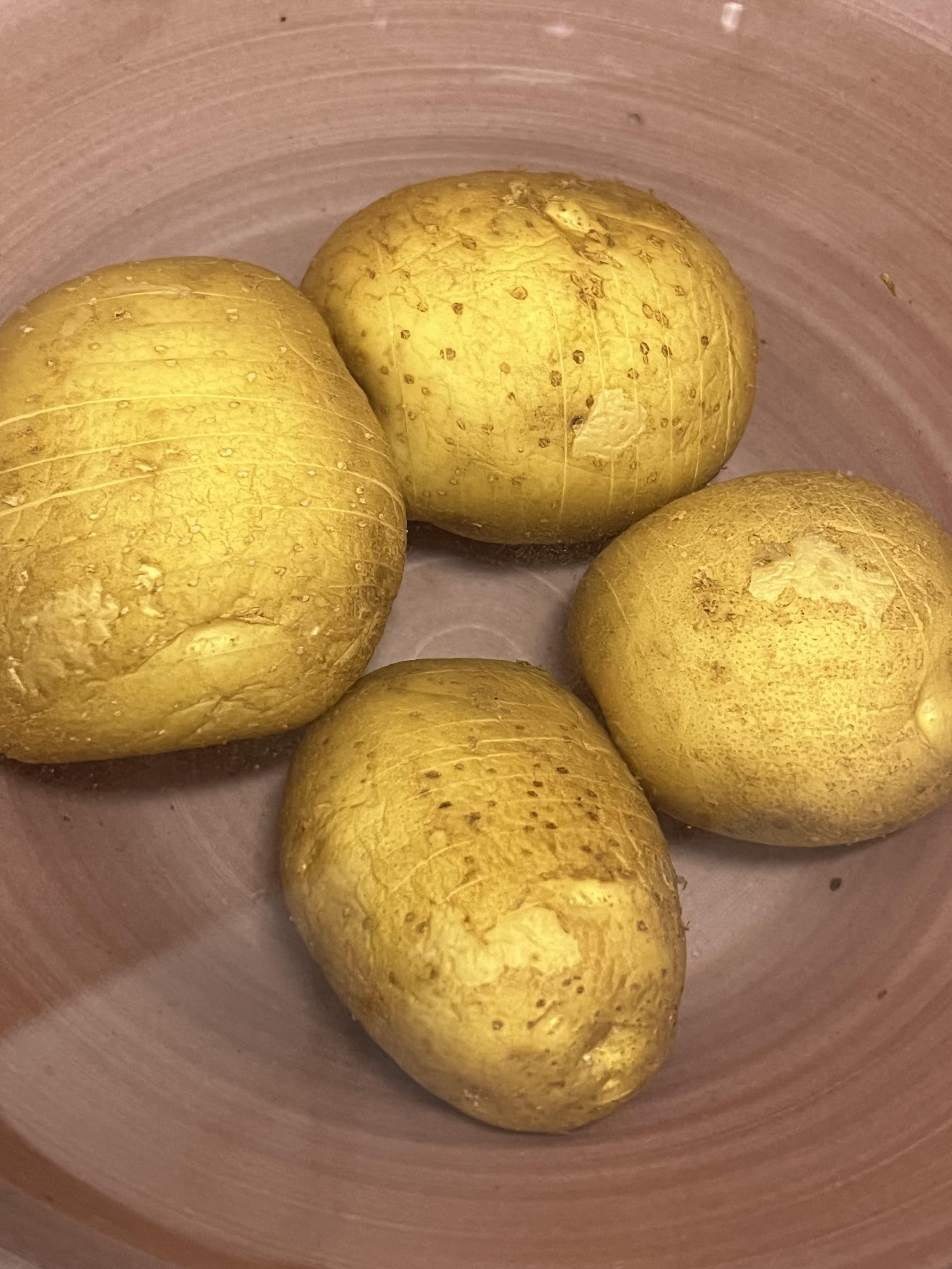 먼저 감자를 닦고 일정한 간격으로 칼집만 쓱쓱 내줘요!!